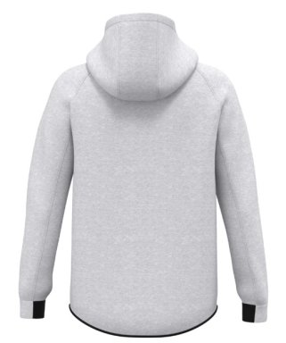 Capuchon met jerseyvoering van 65% polyester / 35% viscose met tweekleurige aanrijgkoordjes, afgewerkt met een plastic uiteinde