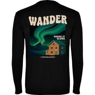 The Wander Where It Glows Lsl Tee captures the magic of the Northern Lights and the spirit of exploration. Featuring a bold back print and warm outdoor energy, this tee is made for wanderers and dreamers.
